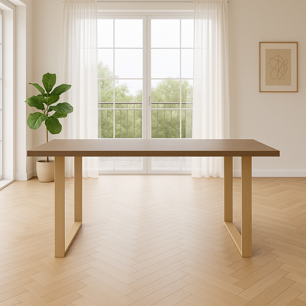 Tisch Macon: Moderner Kufentisch aus Holz-Metall-Kombination. Robust, stilvoll und ideal für Alltag & Gäste.